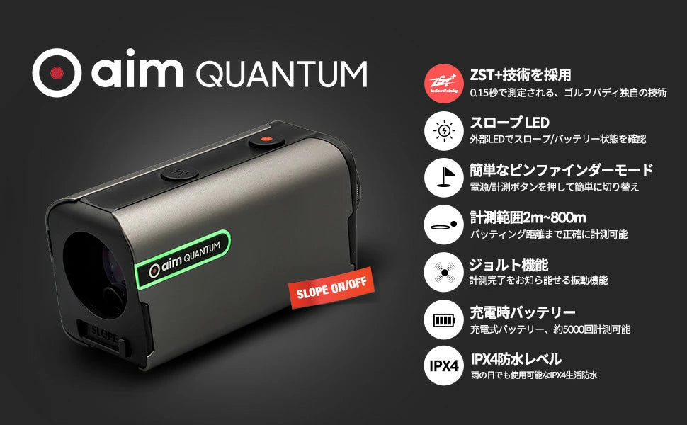 ◆ ZST+技術の適用で既存の製品に比べて2倍以上向上された測定速度:0.15秒! / スロープ(高低差)モード搭載・外部LEDを通じて確認可能 /20年間蓄積されたデータアルゴリズム基盤の正確な高低差補正距離提供/大きくて明るいLCDを適用してサングラスをかけても、曇り日にも鮮明な画質/振動(ジョルト)機能搭載/降水にも安心できるIPX4レベルの防水等級